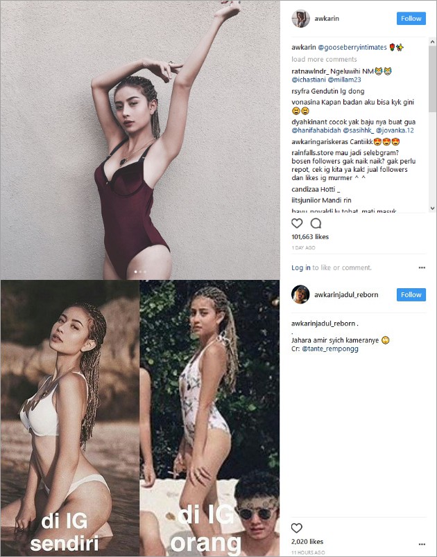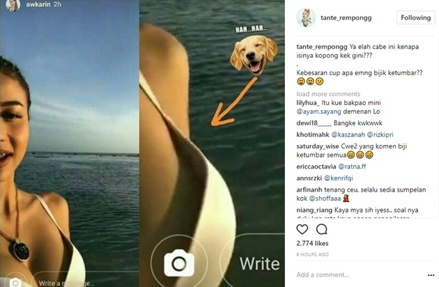 Pada caption Awkarin. Awkarin memang sering mengunggah foto-foto seksi di akun Instagram-nya. Tampil cantik dan menggoda Awkarin menunjukkan belahan dadanya dalam foto yang diunggah.
