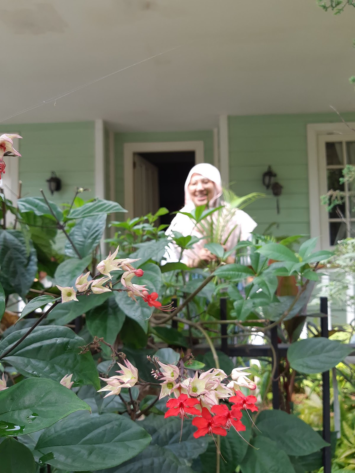 The flowers of bleeding heart vine are arresting with crimson petals emerging from a white base. A vine of fairly rapid growth to 30 feet Glossy oval dark green leaves to 7 inches long. Nona makan sirih putih Clerodendrum thomsoniae atau disebut juga white bleeding heart vine white bleeding glory bower bagflower atau glory bower saja adalah species tanaman berbunga dari genus Clerodendrum famili Lamiaceae berasal asli dari daerah tropis di Afrika Barat dari Kamerun sampai Senegal.