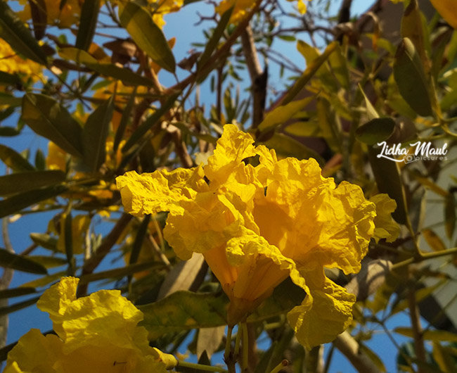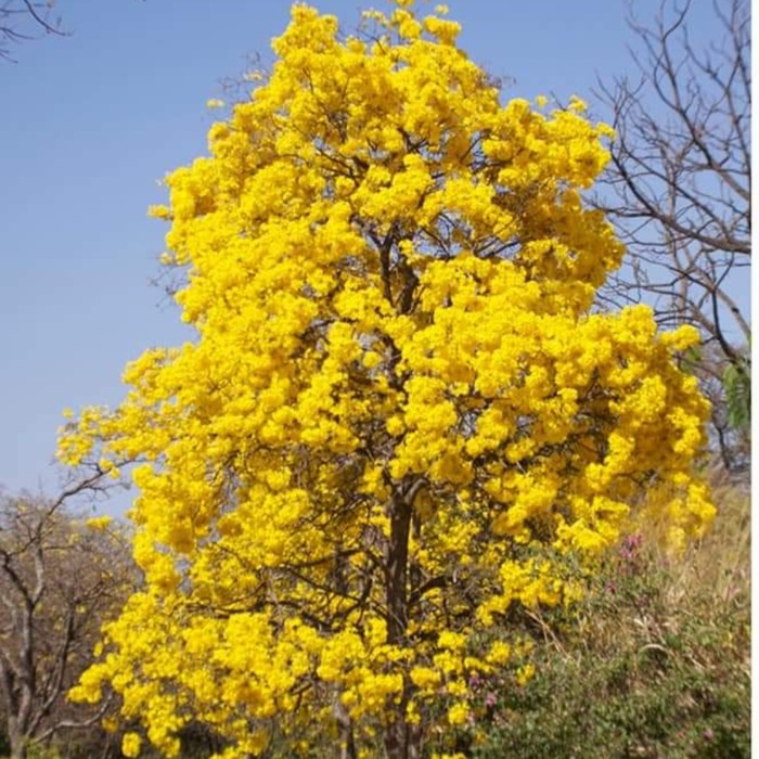 Bunga tunggal yang hanya memiliki satu daun Bunga ganda mekar dengan beberapa lapisan mahkota. 10012019 Saya sendiri baru melihat bunga Tabebuya berwarna kuning yang memang mendominasi di Indonesia. Tanaman ini sekilas menyerupai sakura dengan tinggi yang bisa mencapai 25 meter.