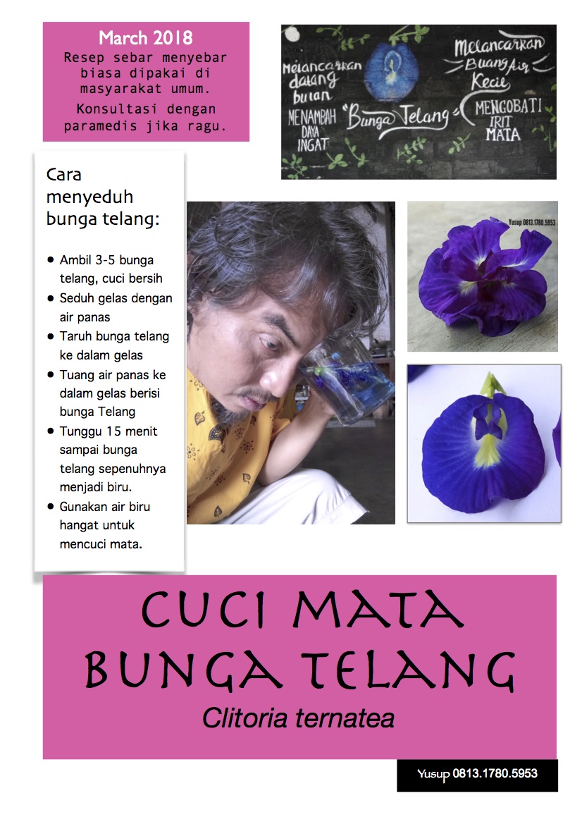 1 mangkuk kecil Bunga Telang yang sudah kering 1 cup air putih. Jika diibaratkan seperti manusia bunga telang adalah wanita yang cantik luar dalam. Jika dahulu bunga ini tidak dipedulikan dan hanya digunakan dalam masakan yang terhad namun kini ia kembali mendapat perhatian.