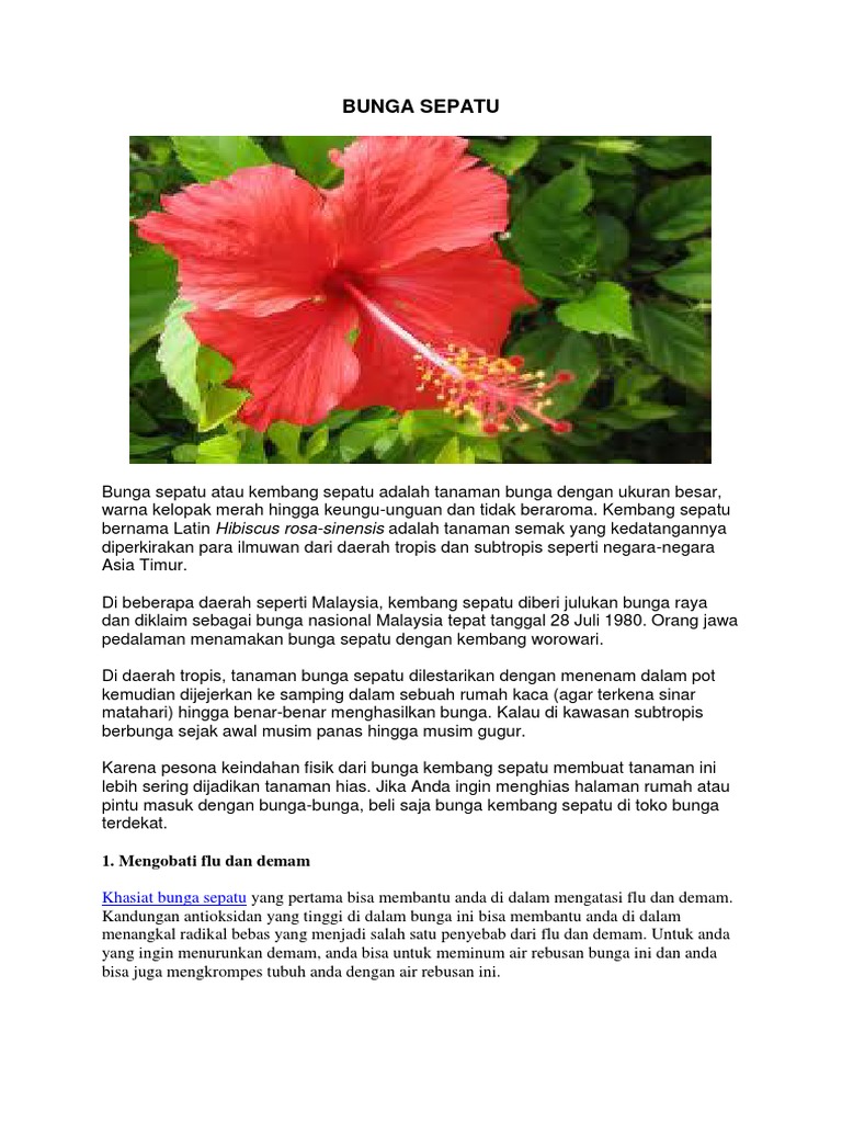 Ciri-ciri bunga kembang sepatu yang paling mudah dikenali adalah bentuk bunganya yang mekar dengan putik dan benang sari yang terlihat jelas didalam bungaWarna dari bunga yang mencolok juga menjadi salah satu ciri utama dari bunga kembang sepatu ini Ketika mekar bunga ini bisa mencapai diameter sekitar 1 meter dan tinggi 50 cm. Admin blog Ini Cirinya 2019 juga mengumpulkan gambar-gambar lainnya terkait ciri ciri bunga sepatu dan manfaatnya dibawah ini. Teh dapat dipakai untuk mengobati demam.