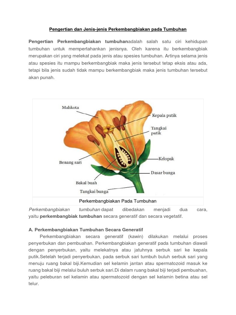 Pengertian Perkembangbiakan Generatif dan 10 Contoh Tumbuhan Yang Berkembang Biak Dengan Generatif 30 Juni 2018 Bimbingan Belajar Brilian 2 Komentar Perkembangbiakan generatif adalah perkembangbiakan tumbuhan secara kawin atau secara seksual.