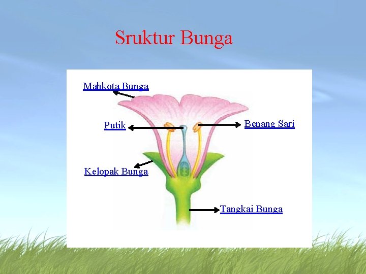 Tema 1 SD Kelas 6. Selain itu benang sari terdiri dari antera yang dipegang oleh filamen sementara putik terdiri dari stigma gaya dan ovarium. Struktur bunga 3 Tumbuhan dikotil dan monokotil dapat dibedakan berdasarkan karakteristik bunga yaitu jumlah bagian-bagian bunga seperti daun daun kelopak daun mahkota dan benang sari yang.