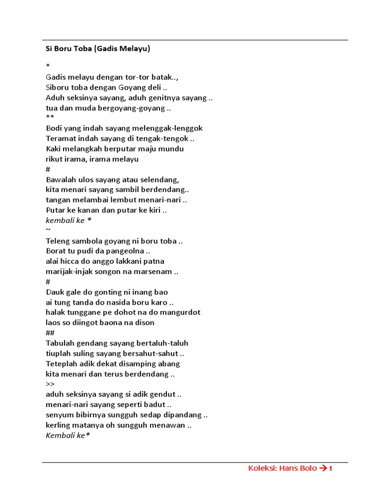 G Ho do bunga ni rohakku C F C Bunga ni holonghu D Jala ho do bunga na ummuli G C D Na so boi putikhon hi G Godang di bahen ho siingotonhu C F C Na soboi tarlupahon D. Jala ho do bunga. Chord Lagu Batak Lirik.