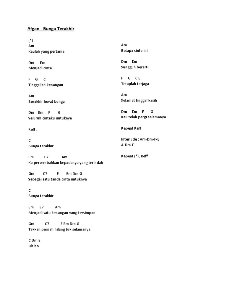 Chord Kunci Gitar Bunga Terakhir - Gunawan. C Bm Bunga terakhir ku persembahkan. Subcribe Untuk Mendapatkan Update Lagu Terbaru Lainnya.