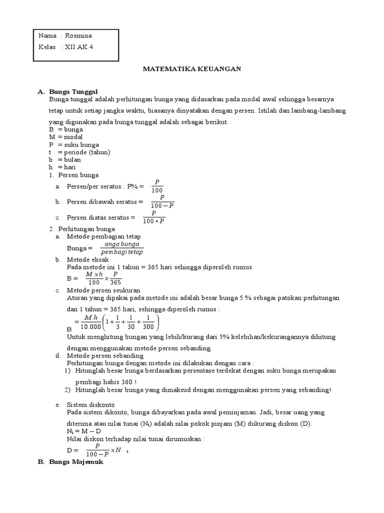 Date - 0103 Matematika Keuangan. Apabila harga n bulat maka rumus yang dipakai dalam mencari modal akhir ialah. Bunga majemuk merupakan bunga yang menjadi pokok dari suatu simpanan.