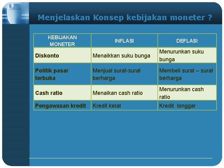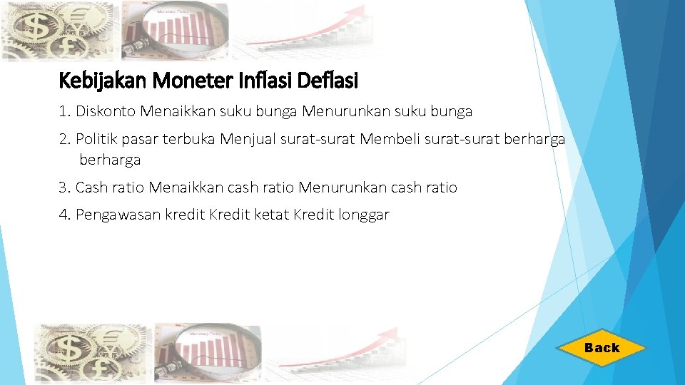 Kebijakan moneter bertujuan menjaga kestabilan moneter agar dapat meningkatkan kesejahteraan masyarakat. 20062018 Selain itu faktor yang mendasari Bank Indonesia harus menaikkan Bunga adalah karena diperkirakan tingkat inflasi pada tahun 2018 adalah sebanyak 36 Dengan demikian solusi untuk mengatasi inflasi bank sentral dapat menerapkan kebijakan diskonto dengan cara meningkatkan nilai suku bunga. Di sini jelas ada hubungan suku bunga dan investasi.