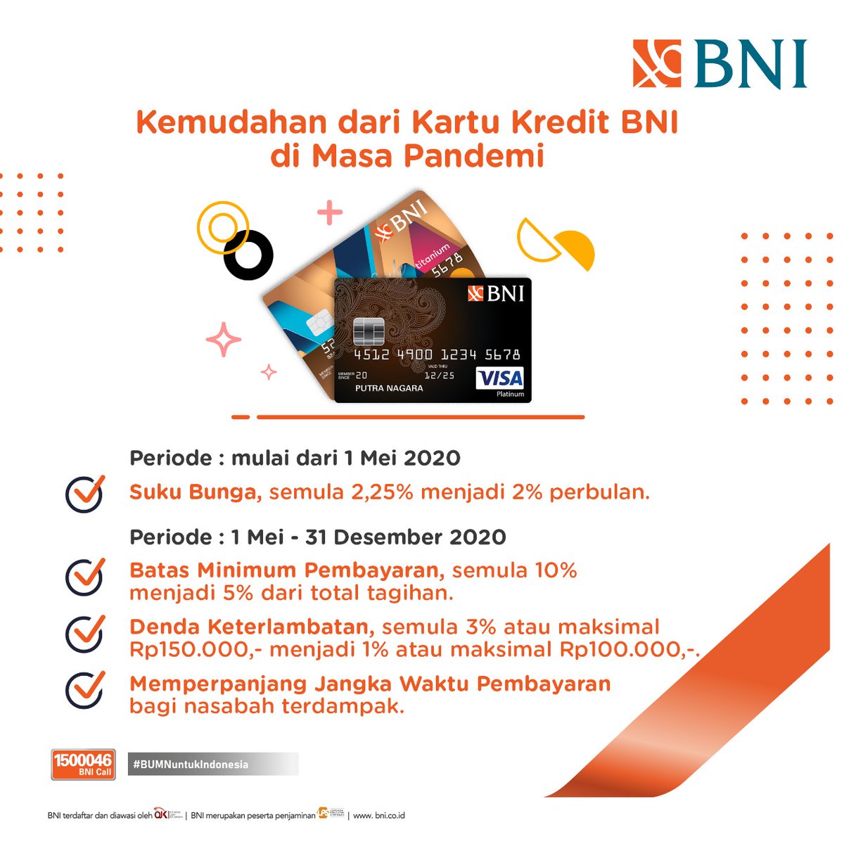 Suku bunga kartu kredit bni. Transaksi Belanja 225 per bulan. Kebijakan Penyelenggaraan Kartu Kredit Masa Covid 19 sesuai surat BI No. Nama dan logo organisasiinstitusi akan dicetak pada kartu sebagai simbol kebanggaan dan prestige dari suatu organisasiinstitusi.
